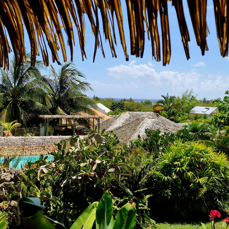 Le Kabanon est une petite case en bois au toit de palmes avec vue mer, située dans le jardin tropical de L’ Écolodge.